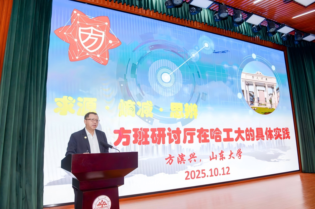 10月12日下午,方滨兴院士做客“鳌山讲坛”,做了题为《求源 熵减 思辨——方班研讨厅在哈工大的具体实践》的主题报告。方滨兴院士阐述了“方班研讨厅”这一创新教学模式的创立背景和发展历程。他指出,方班研讨厅的核心要素是“求源、熵减、思辨”,“求源”是指学生在学习过程中要知其然并知其所以然,通过输出倒逼输入,深化对知识的理解和掌握;“熵减”是一种归纳总结的能力,通过做减法和乘法,将复杂问题简化,提炼出核心要素;“思辨”强调批判质疑和形成创新观点,通过提出问题、质辩和形成新观点,培养学生的创新思维能力。