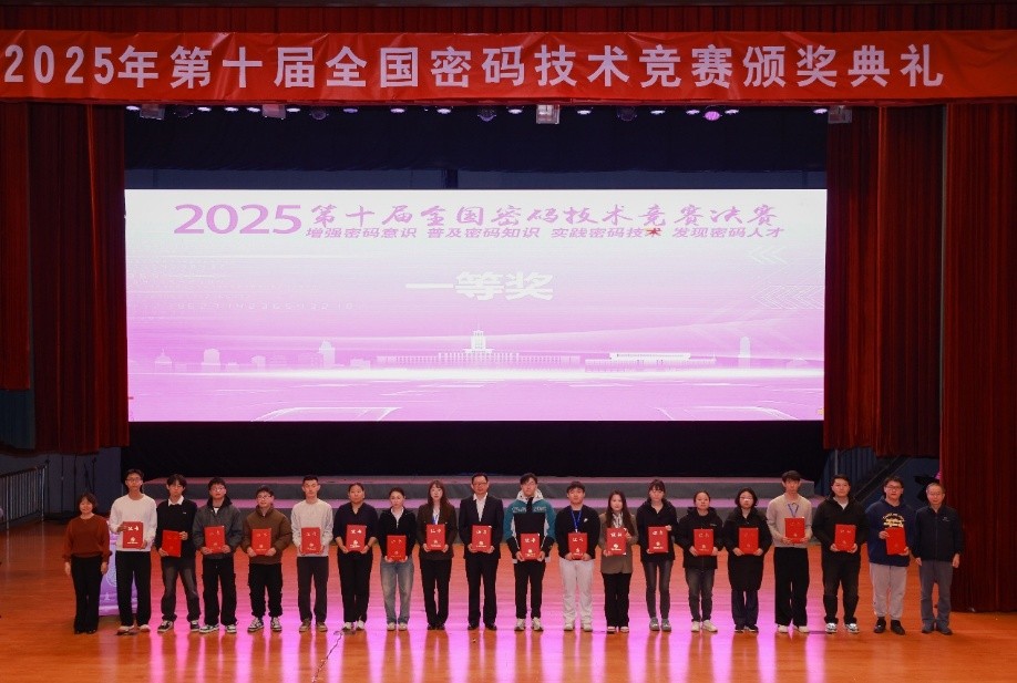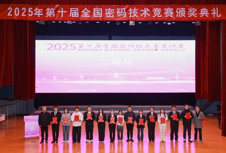 11月29日,2025年第十届全国密码技术竞赛颁奖仪式在南开大学举行。山东大学网络空间安全学院派出的10支参赛队伍经过激烈角逐,获得一等奖1项,二等奖1项,三等奖8项的优异成绩。