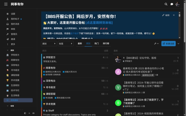 “网事有你”学生论坛以“沉淀校园记忆、凝聚网安力量” 为核心定位,围绕校园多样化需求构建特色栏目体系,整合了交流分享、成长帮扶与信息传递等多元功能,为全体师生提供了专属的线上互动空间。