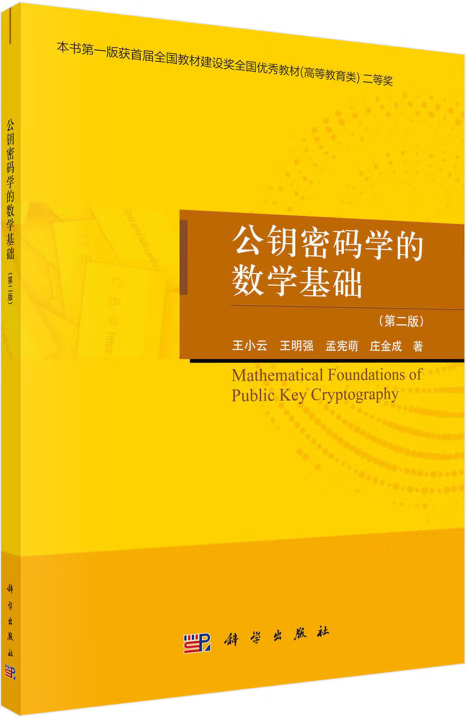 此次入选的5本教材涵盖网络空间安全核心领域,阵容雄厚、特色鲜明,分别为:王小云院士主编的《公钥密码学的数学基础(第二版)》,魏普文教授与王美琴教授联合主编的《密码学概论》,王美琴教授主编的《密码分析学》,陈宇教授主编的《公钥密码学》以及许光午教授主编的《算法数论九讲》。