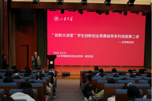 10月23日,为帮助学生深入了解创新创业赛事,激发山大学子创新潜能,网络空间安全学院举办“创新大讲堂”学生创新创业赛事名师座谈会。本次讲座邀请山东大学团委创新创业实践育人工作负责人南东周老师进行座谈,山东大学青岛校区近400名同学参与本次座谈会。